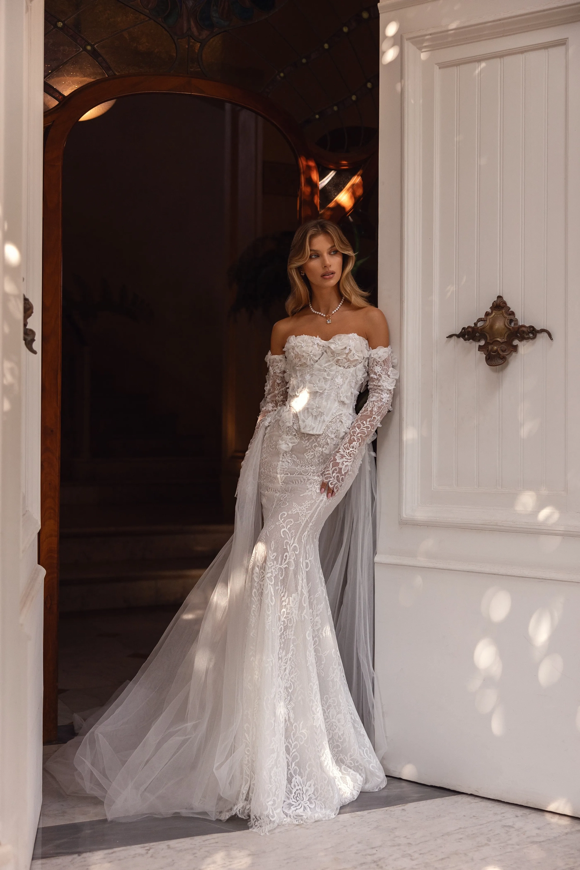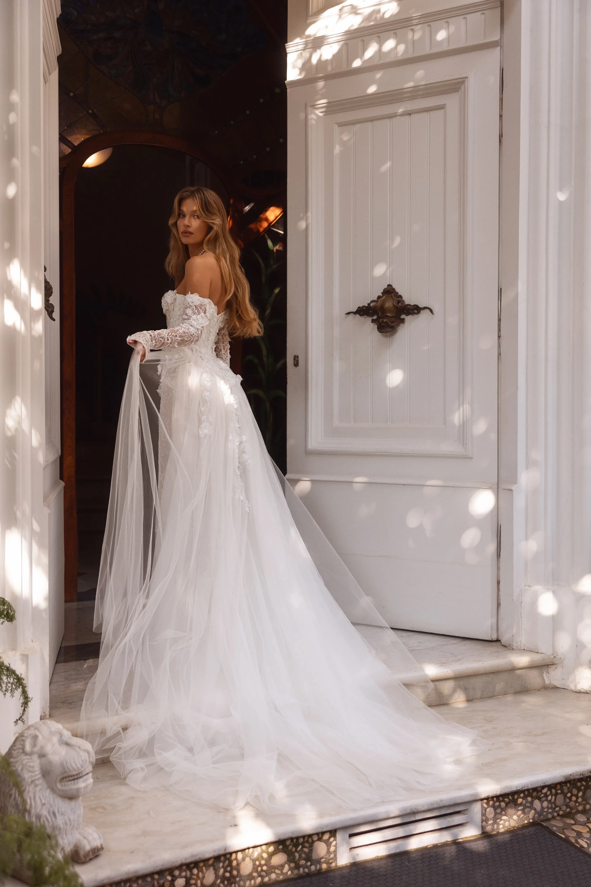 Model in white Allure dress