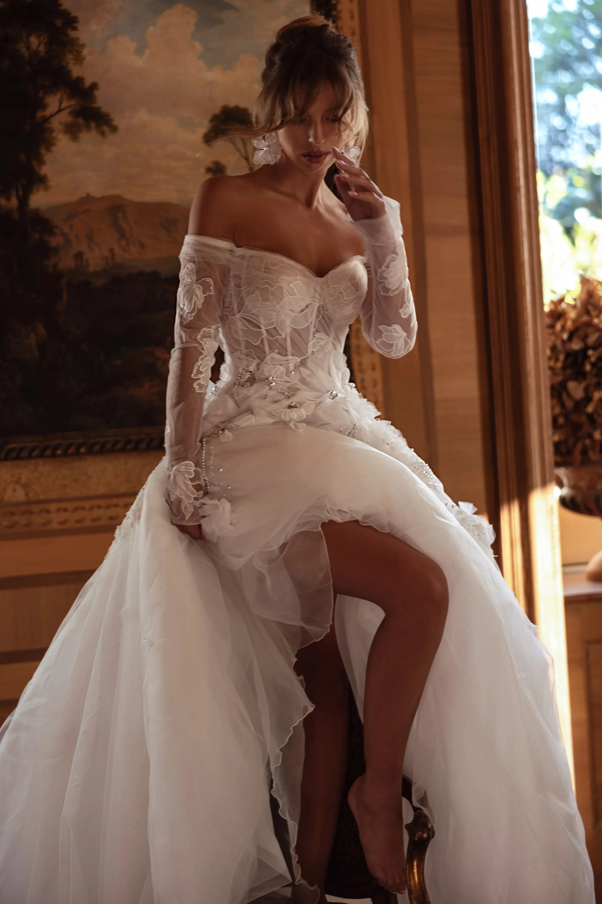 Model in white Allure dress